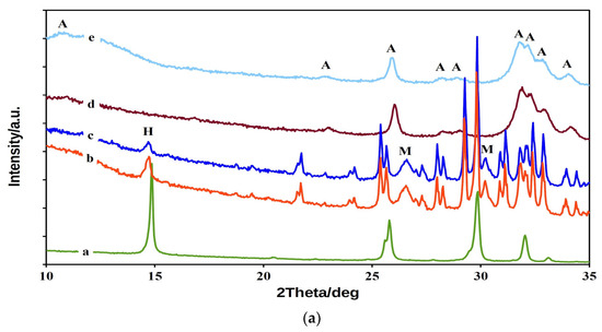 The phase composition of samples were characterized by X-ray diffraction analysis (Philips X’ PertPro, Malvern Panalytical B.V., Eindhoven, The Netherlands, using Cu Kα radiation, 40 kV, 50 mA, 2Θ range 10–60°) and FTIR spectroscopy (Shimadzu, Kyoto, Japan, IRAffinity1, 400 mg KBr + 1 mg sample).