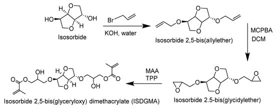 32]. Kim et al. reported on isosorbide 2,5-bis(propoxy) dimethacrylate (ISOPMA) and evaluated it as a dental resin composite in comparison to ISDGMA [