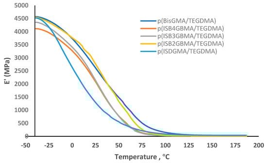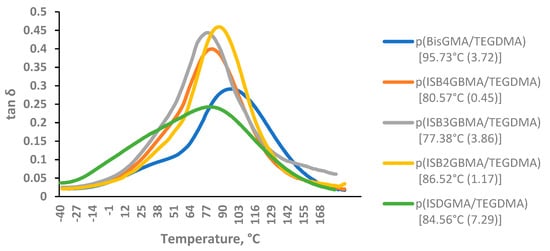 49]. Therefore, the higher degree of monomer conversion of p(ISB2GBMA/TEGDMA), in comparison to the other ISBGBMA isomers, is attributed to its lower viscosity.