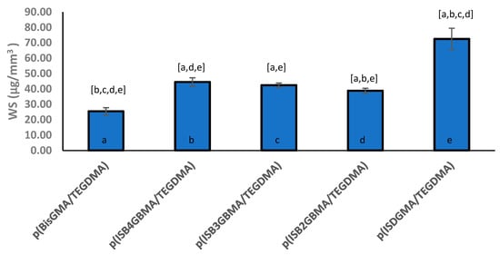 3 was statistically different from the water sorption of p(ISB4GBMA/TEGDMA) at 44 g/mm