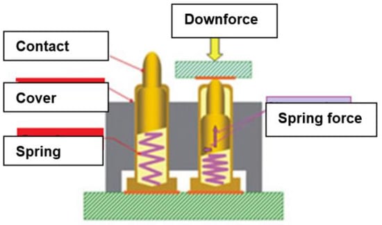 By means of two outer electrodes, the current was provided while the two inner ones were used for voltage measurement. This eliminates the impact of cable resistance between the voltage meter and measuring points. Each of the electrodes was immersed in the cylindrical plastic and contained in its structure a spring to provide uniform pressure on the substrate. The schematic structure of the electrode is shown in Figure 3.