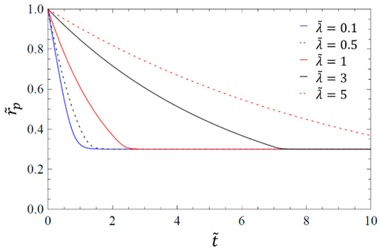 The differential equation for the dimensionless pore radius results again from imposing energy conservation using the modified expression for (Equation (15)).