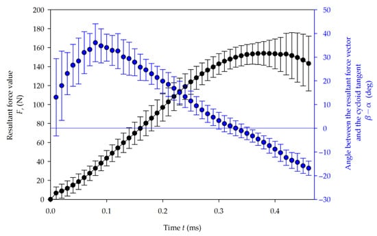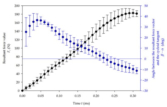 | α | °, rad | Angle between the resultant force and x direction (see Figure 5) |