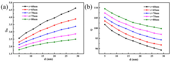 The change of (a) gain threshold and (b) quality factor Q with the nanowire radius r and dielectric layer thickness d.