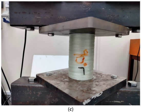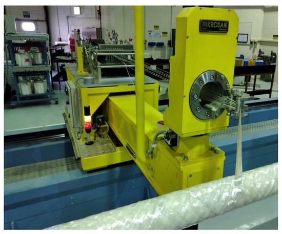 The winding process was used to fabricate the specimens is an automated open moulding process that uses a rotating mandrel as the mould. The winding process results in a high degree of fibre loading, which provides high tensile strength in the manufacture of hollow and circular tubes. Continuous reinforcement was fed through a resin bath and wound onto a long PVC tube, placed over the rotating mandrel. For the fabrication of composite tube specimens for this study, glass fibre (Owens Corning, Toledo, OH, USA), in the form of E glass fibre rovings, was used as the reinforcing material, while epoxy resin was used as the matrix material. A helical filament winding pattern was used to manufacture the 45°, 55° and 65° specimens. On the other hand, a hoop filament winding pattern was used for producing the 90° specimens. As provided by the suppliers, the material properties of the constituent materials used to manufacture the tested composite tubes are shown in Table 1.