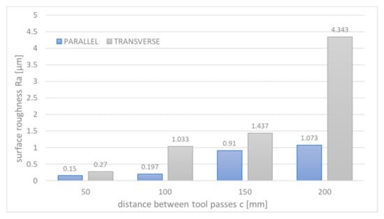 The above-mentioned technological characteristics were the basis for the selection of parameters for the second part of the research, where the influence of machining strategy (c/D ratio) on accuracy and surface quality was investigated. After the machining, the dimensions of each cavity were measured, and roughness parameters were determined. Time of the machining for each case was as follows: