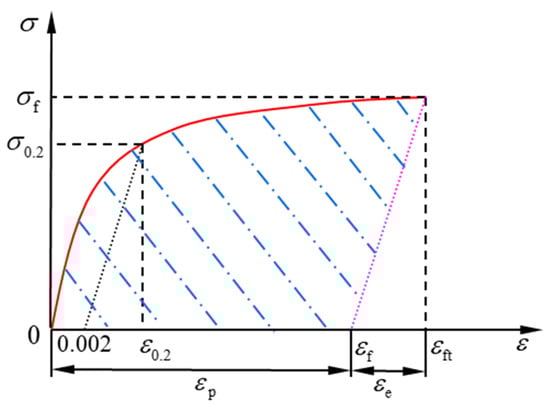 The stress–strain relation expressed in Equation (1) could be presented by the curve shown in Figure 1 where εe is elastic strain, εp is the plastic strain, εft is the total fracture strain.