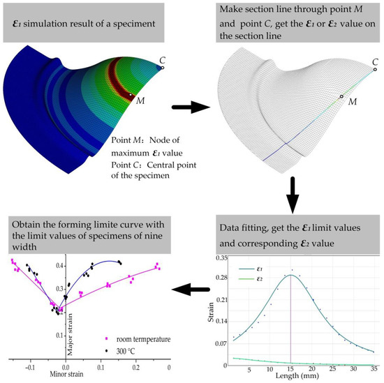 A schematic diagram of calculating the forming limit values from the simulation result is shown in Figure 11.
