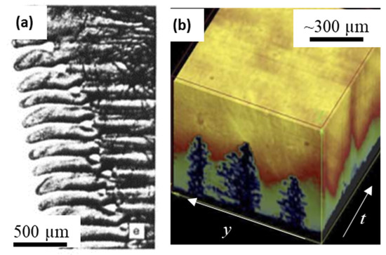 - Losert, W.; Shi, B.Q.; Cummins, H.Z. Evolution of dendritic patterns during alloy solidification: Onset of the initial instability. Proc. Natl. Acad. Sci. USA 1998, 95, 431–438. [Google Scholar] [CrossRef]
