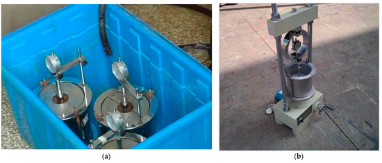 Load-bearing ratio test: (a) soak sample; (b) bearing ratio test equipment.