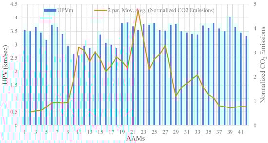 UPV versus normalized CO2 emission subjected to sulphate attack. Add unit for UPV.