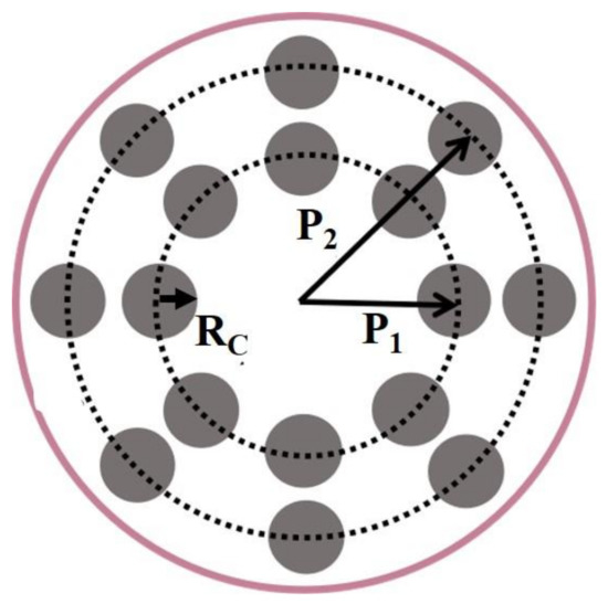 Schematic of spot array light irradiation. and are the positions of the inner spot and outer spot. In our calculations, the numbers of the inner spot light and the outer spot light are both eight, and the radius of the spot, is equal to 0.15 mm.