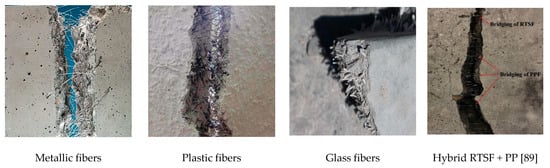 Karthik et al. (2015) [145] observed that in the case of structural applications, the steel fibers worked as the main reinforcing material while the polymeric fibers mainly preserved the material after crack starting. They concluded that the performance of recycled PET was lower than that for virgin PP fibers in the complex hybrid composite due to the lower interaction of steel fibers with PET fibers. Therefore, many other researchers have tried the combination of steel fibers with PP fibers with at least one of them obtained from waste.