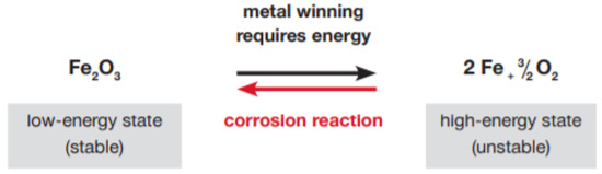 Chemical reactions of iron during corrosion and the metal-winning process [