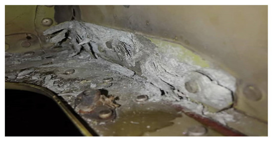 15]. Severe corrosion was found at the upper longeron, lower longeron, and wing spar when undergoing structural maintenance. These areas are listed as Primary Structure Element. The corrosion on the upper longeron is depicted in