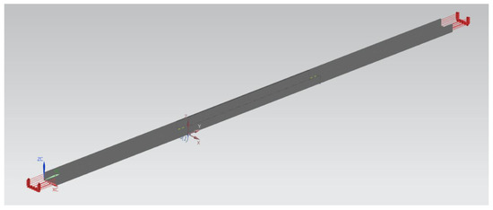 Figure 12. An FEA meshing and its boundary conditions were designated on the longeron 3D model. Finally, the strength reduction analysis against the thickness reduction of the longeron was carried out. The input parameters for the upper longeron design are shown in