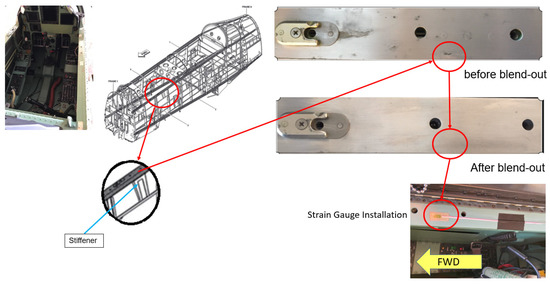 Regarding the FEA simulation, the affected aircraft longeron was equipped with several strain gauges to record the flight test’s strain sequence. The FEA method was developed with the experimental activity and now represents a valuable tool in the numerical evaluation of local stress and strain. However, the results obtained will be validated using the flight test, which will record the fatigue strength using the strain gauge [