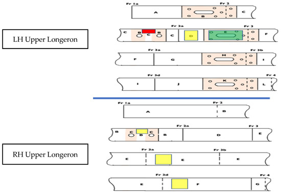 There were a few corrosion spots on the LH and RH longeron. Corrosion treatment work was carried out, which in return reduced the thickness of the longeron. The longeron has a thickness of 2.7 +/− 0.2 mm. Considering that the longeron’s initial thickness (datum) is 2.7 mm, the structural area was treated and segmentized. Based on