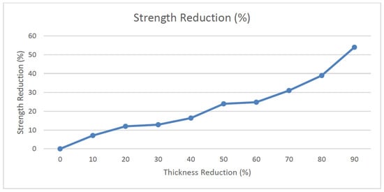 | Thickness (mm) | Max Load (N) | Strength Reduction (%) | Stress (Mpa) | Thickness Reduction (%) |