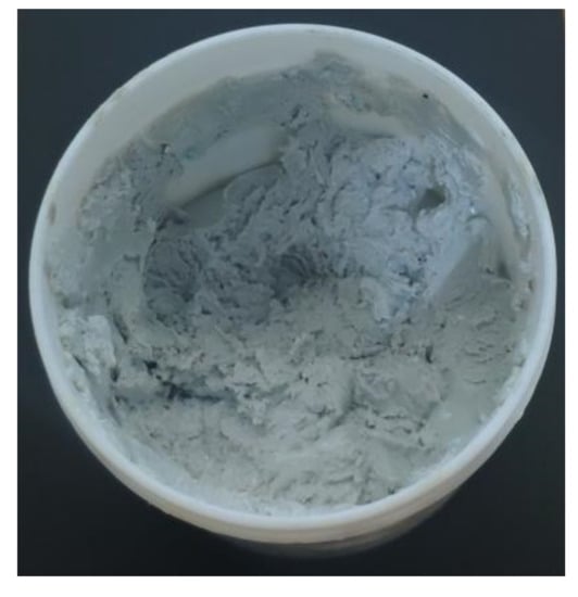 High-temperature tape with 350 °C heat resistance and plastic steel soil were used as the internal insulation layer of the IA []. Plastic steel soil is a kind of paste material with small curing shrinkage and good mechanical properties. The hardening time for plastic steel soil is generally 12 h, the compressive strength of plastic steel soil is about 70 MPa, and the temperature resistance can be up to 380 °C, which is very suitable for packaging materials. The physical appearance of plastic steel soil is shown in Figure 1.