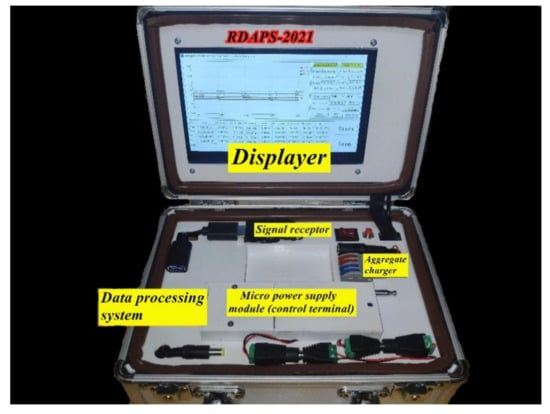 The hardware mainly included the wireless transmission module (signal receptor), micro power supply module (control terminal), data processing system, and display screen, as shown in Figure 5.