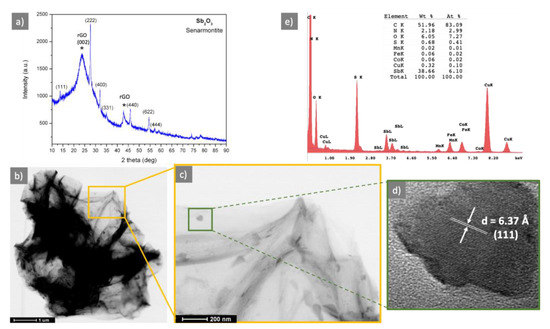- Wang, X.; Yang, Z.; Mei, F.; Zhou, Y.; Xu, J.; Jiang, Y. One pot synthesis of Sb2O3/reduced graphene oxide composite anode material for sodium ion batteries. Mater. Lett. 2020, 280, 128565. [Google Scholar] [CrossRef]