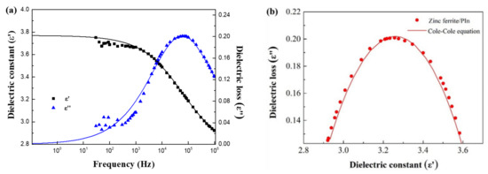 Dielectric spectra (a) and the Cole-Cole curve (b) of ZnFe2O4/PIn particles based ER fluid.