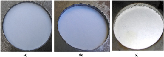 View of sample holes after the process: (a) 40,000 cycles; (b) 80,000 cycles; (c) 120,000 cycles.