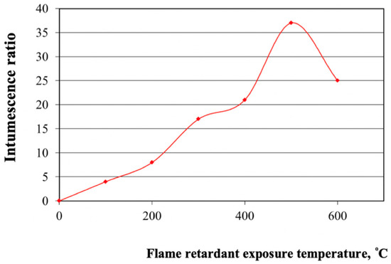 Dependence of the intumescence ratio on the flame retardant exposure temperature.