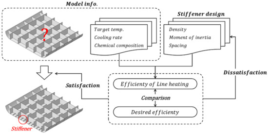 The process for determining the specifications of the stiffener to maintain the correction effect of the line heating is divided into two procedures, as shown in Figure 1. The detailed procedure for each is described in Section 3 and Section 4, and a brief procedure is described in this chapter.