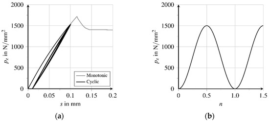 Simulation of cyclic tensile loading (adapted from [27]): (a) Loading over slip relation and (b) sinusoidal tensile cyclic loading function.