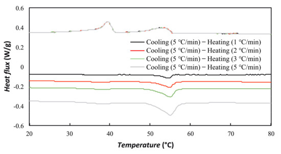 DSC curves of 5 wt% RT55 nano-emulsions with GO as nucleating agent (Reproduced with permission from Ref. [87]. Copyright 2021 Elsevier).