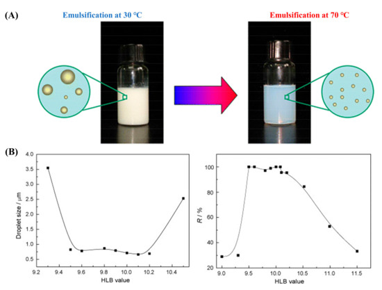 - Ren, G.; Sun, Z.; Wang, Z.; Zheng, X.; Xu, Z.; Sun, D. Nanoemulsion formation by the phase inversion temperature method using polyoxypropylene surfactants. J. Colloid Interface Sci. 2019, 540, 177–184. [Google Scholar] [CrossRef] [PubMed]