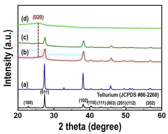 - Park, H.; Son, W.; Lee, S.H.; Kim, S.; Lee, J.J.; Cho, W.; Choi, H.H.; Kim, J.H. Aqueous Chemical Synthesis of Tellurium Nanowires Using a Polymeric Template for Thermoelectric Materials. CrystEngComm 2015, 17, 1092–1097. [Google Scholar] [CrossRef]