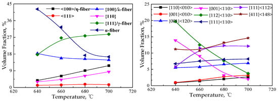 Figure 11. Texture component diagram during grain growth of Fe-0.65%Si non-oriented electrical steel annealed sheet.
