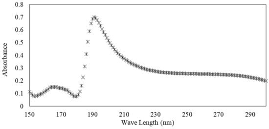 UV–visible absorbance measurements were performed using a spectrophotometer Uvikson XS double beam with a wavelength precision of 0.3 nm. Spectral range from ʎ = 150 to 300 nm was used and the measurement time was 0.1 s. Solutions were poured into UV quartz cells with 10 mm path length. Figure 3 illustrates the evolution of the absorbance as a function of the wavelength for an s/s PCMs/water solution (10−1 g·L−1).