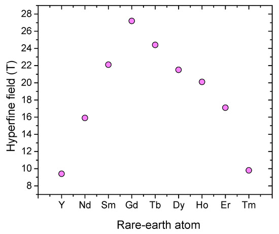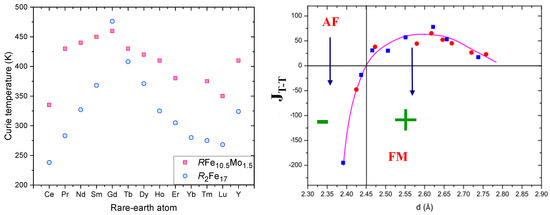 - Givord, D.; Courtois, D. Exchange interactions in R-M intermetallics. J. Magn. Magn. Mater. 1999, 196, 684. [Google Scholar] [CrossRef]