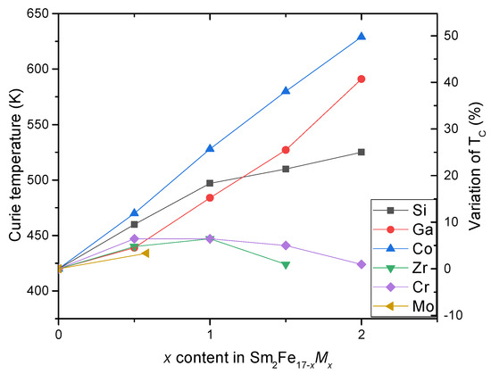 - Valeanu, M.; Plugaru, N.; Burzo, E. Effect of Nitrgenation on the Magnetic Properties of Y2Fe17−xMx Compounds, with M = Al, Ga or Si. Solid State Commun. 1994, 89, 519–522. [Google Scholar] [CrossRef]