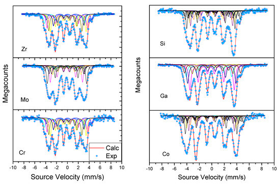 - Bessais, L.; Djega-Mariadassou, C.; Koch, E. Structural and Mossbauer spectral study of the metastable phase Sm(Fe, Co, Ti)10. J. Phys. Condens. Matter 2002, 14, 8111. [Google Scholar] [CrossRef]