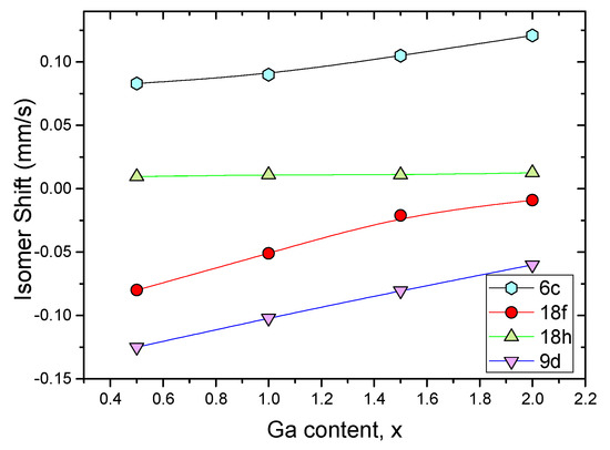 - Dunlap, R.A.; MacKay, G.R.; Wang, Z. A Mossbauer effect investigation of site preferences and Fe environments in Ga-substituted Sm2Fe17 compounds. J. Alloys Compd. 1997, 260, 28–31. [Google Scholar] [CrossRef]