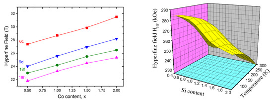 - Forker, M.; Julius, A.; Shulte, M.; Best, D. Mossbauer study of the hyperfine interaction of Fe-57 in Y1−sCo5+2s and related compounds. Phys. Rev. B 1998, 57, 11565. [Google Scholar] [CrossRef]