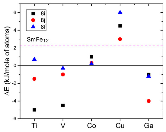 - Sabirianov, R.F.; Jaswal, S.S. Electronic structure and magnetism in Sm2Fe17−xAx (A=Al,Ga,Si). J. Appl. Phys. 1996, 79, 5942. [Google Scholar] [CrossRef]