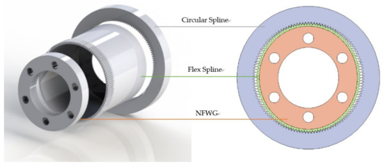 - Ostapski, W.; Mukha, I. Stress state analysis of harmonic drive elements by FEM. Bull. Pol. Acad. Sci. Tech. Sci. 2007, 55, 115–123. [Google Scholar]
