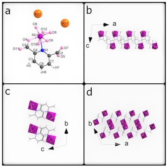 The most important crystal data are presented in Table 1. Table S1 shows a list of selected bond lengths. Figure 1a–d shows the K26dcpa structure while the structure of K35dcpa is presented in Figure 2a–d.