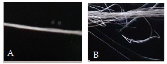 SCV conductive yarn before (A) and after (B) abrasion.