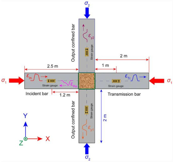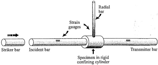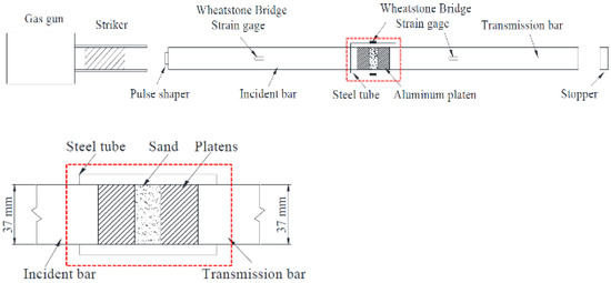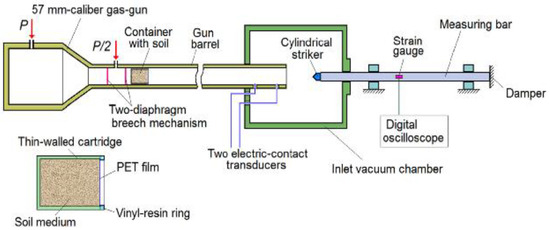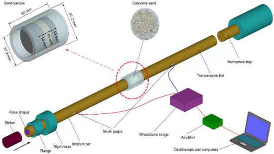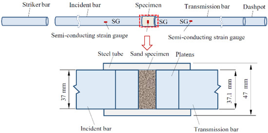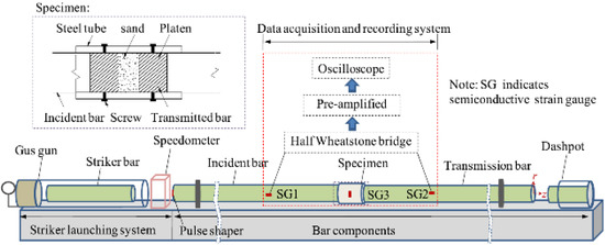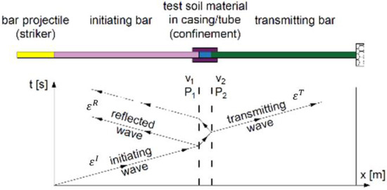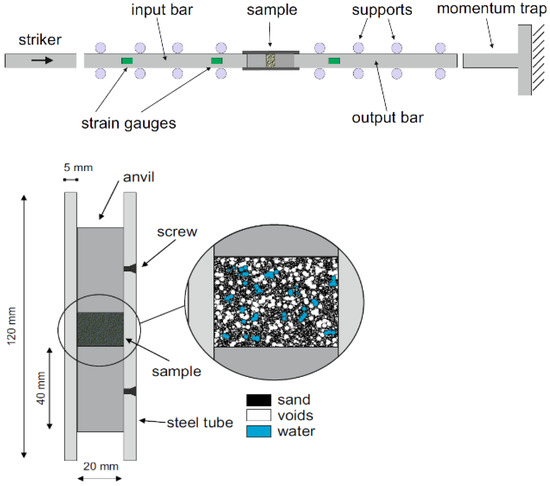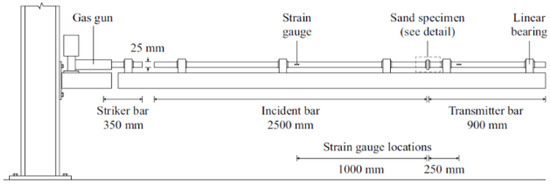 Figure 11. Schematic view of SHPB test with a soil specimen (reprinted from Ref. [76]).