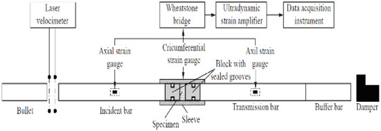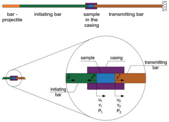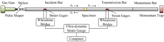 Figure 9. Schematic system of a modified Hopkinson split pressure bar for dynamic loading (reprinted from Ref. [75]).