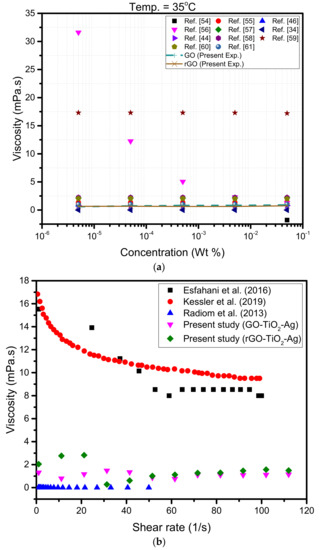 - A possible explanation is that the reduced oxygen molecules are the reason for certain minor differences in viscosity between the two fluids. Reduced nanoparticle concentration causes the viscosity of GO-based nanofluid to increase, whereas rGO-based nanofluid viscosity decreases.