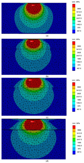 According to the results (Figure 14), stress distribution in the uncoated Ti-6Al-4V gradually changed from high to low stress (Figure 14a). However, in this study, the five sets of coated films (Figure 14b–f) exhibited obvious stress reduction when the stress was transferred from the upper coating to the lower TiNb layer because of the low Young’s modulus of TiNb. As illustrated in Figure 14d–f (coated films with nitrogen doping), the Young’s modulus of the TiNb(N), TiNbZrTa(N), and TiNbZrTa(N)-O coatings was higher than that of other coatings; however, the experimental results did not affect the stress transfer phenomenon. This result was consistent with the study of Zhao et al. [27], where the introduction of a multilayer structure changed the stress field. In this study, the intermediate layer of TiNb in the five groups of films reduced the stress concentration of the internal structure of the overall coating and may have reduced the risk of coating deformation and fracture resulting from excessive stress [27,28].