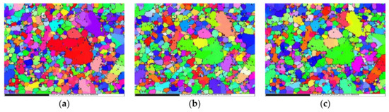 EBSD maps of non-heat-treated, die-cast samples: (a) before heat treatment; (b) after heat treatment.